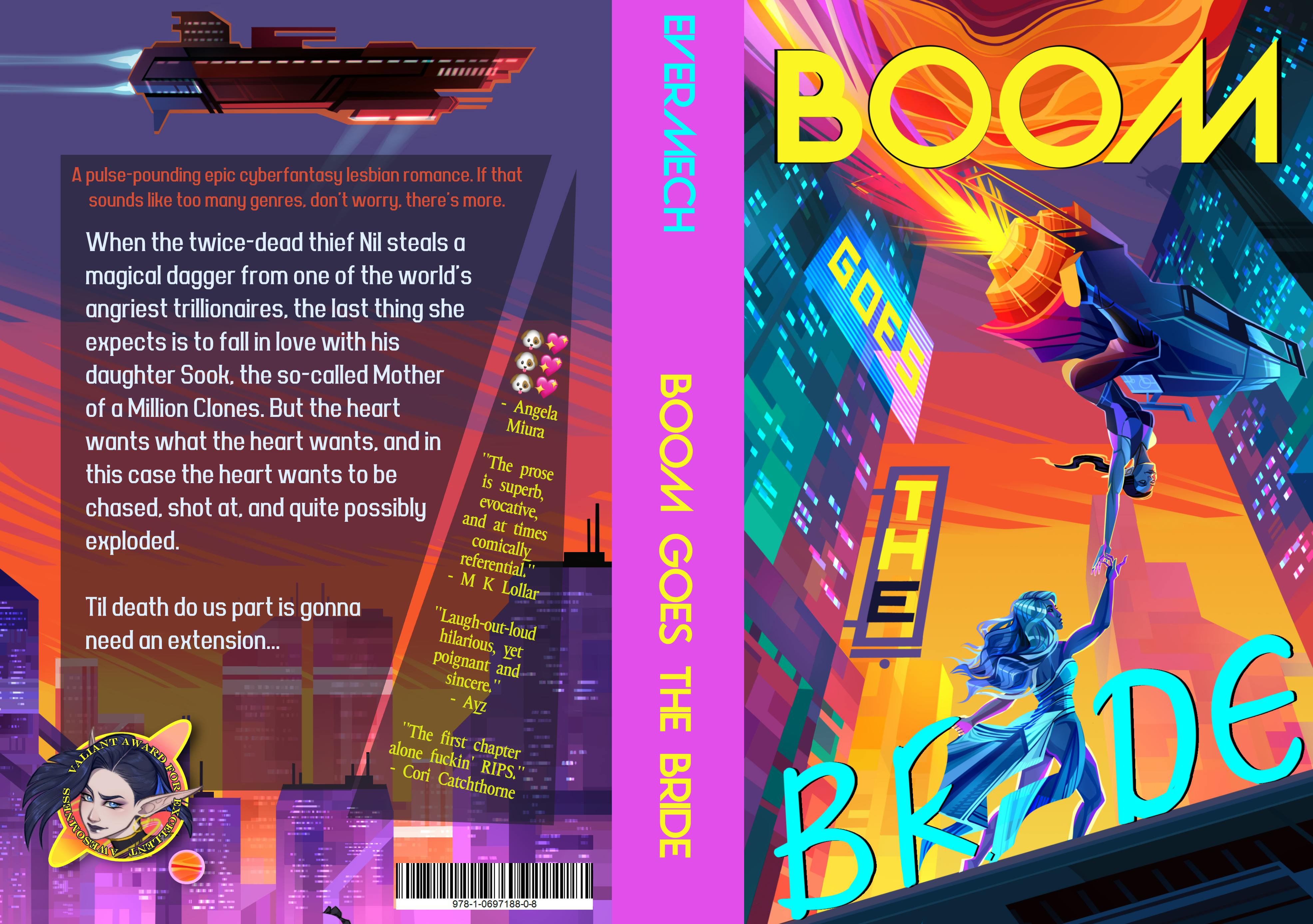 That means I'll be purchasing a fancier "hybrid" print instead of a standard digital one. The cover will be done "conventionally" as in they will mix custom inks to match the vibrant, gorgeous, incredibly gay colours chosen by the cover artist Kholbatar (with extremely limited input from me, i might add. She really just reached directly into my skull, said "what are you, colourblind?" and threw my ideas in the shitter where they belonged. then she made something good.)