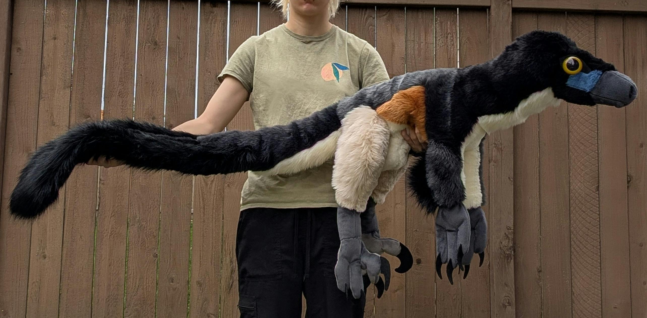 In the winter of 2024, after creating a cute fluffy Allosaurus (bottom right), my plush-making style finally began to solidify. Soon after, I’d crafted the plush that would cause my profile to really gain interest, allow me to move out, and officially start VarmintFeathersLLC! My life size velociraptor;