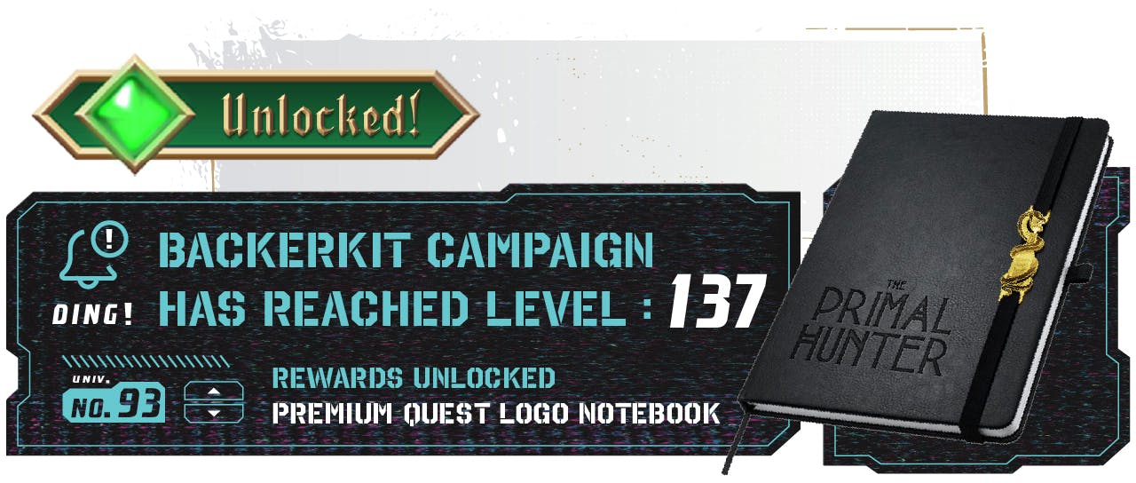 All Standees, Sylphie Plush, New Bookmark, Upgraded Sticker, Premium Quest Log Notebook, and Primal Hunter Storefront are unlocked! Your next objective: Reach $1.25 Million to unlock the next stretch goal!