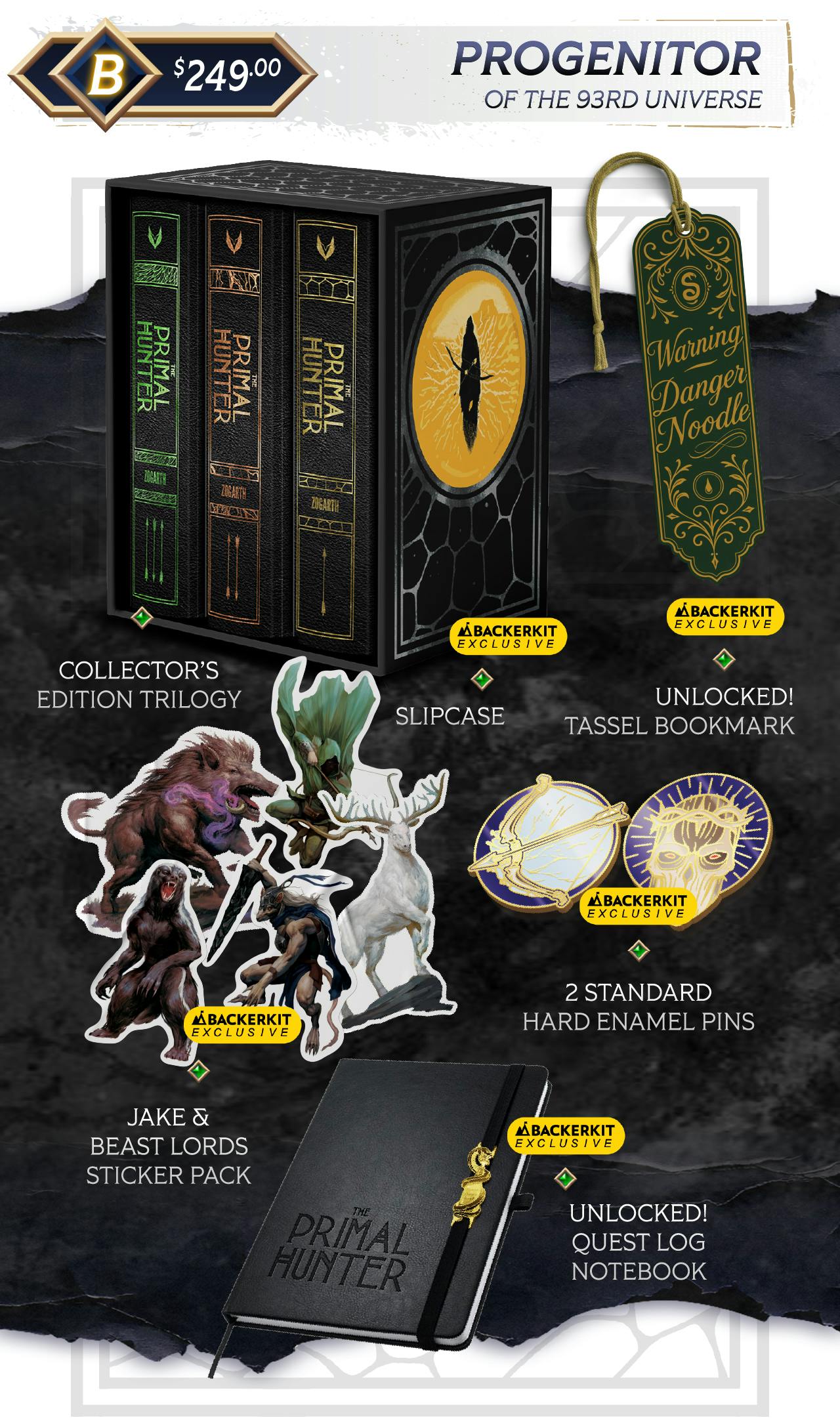 You've also reached the $800k, $900k, and $1M stretch goals which unlocked a new Tassel Bookmark, an upgraded holographic Warning Danger Noodle Sticker, and an entire Primal Hunter storefront that will open for Backers only at the end of this campaign!!