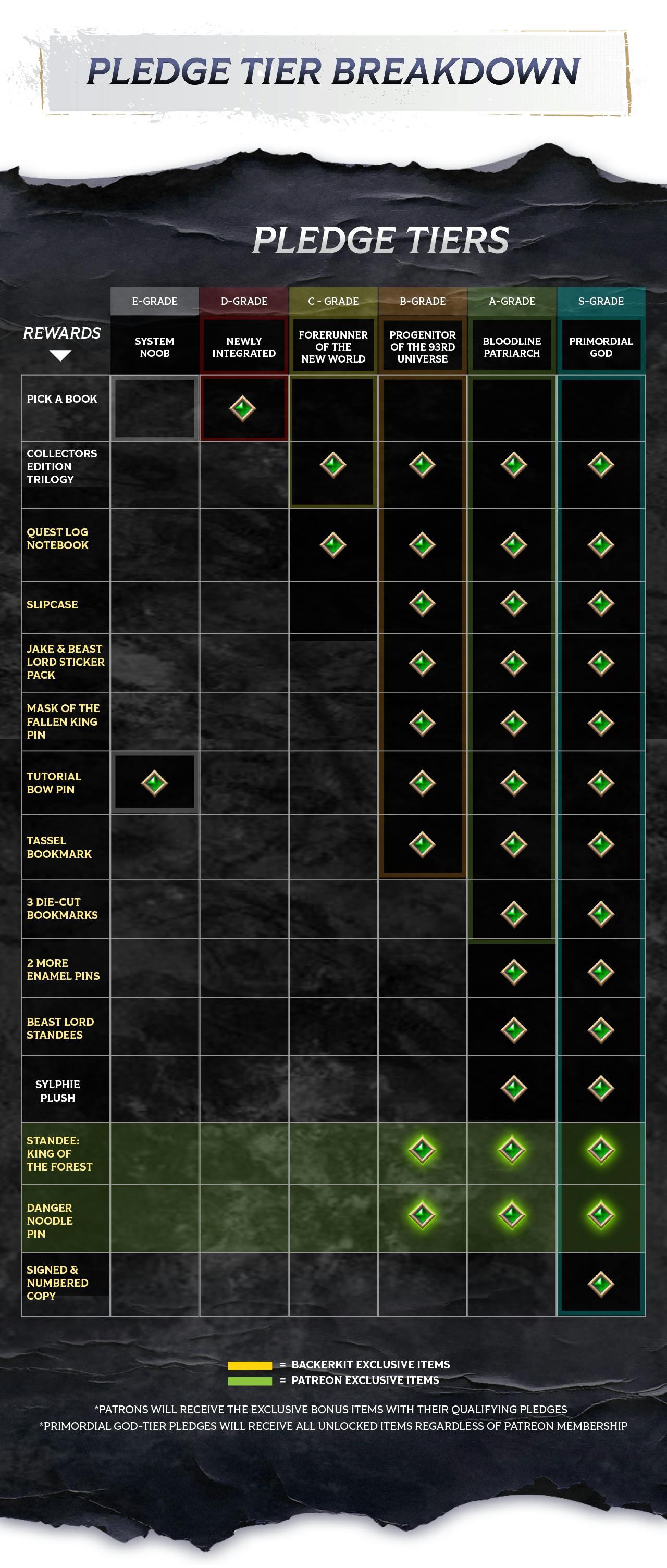 Choose your tier! We've got five tiers for *most* people to choose from, plus two special tiers exclusive to The Primal Hunter Patreon supporters. After you select your tier, you'll be able to select additional Add-Ons!