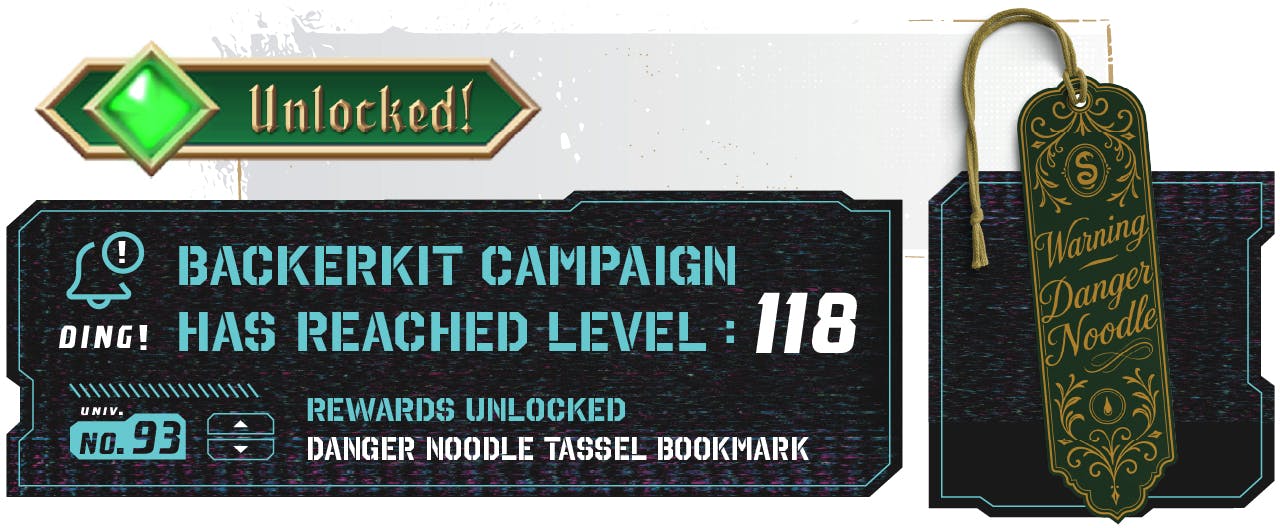 We've crossed the $800k milestone, which means it is time to unlock our next stretch goal: A Warning Danger Noodle Tassel Bookmark! Here's a closer look: