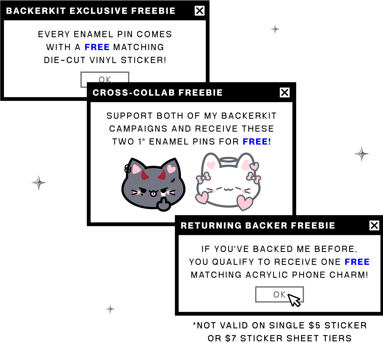 I've added some new add-ons to the campaign, so I've upgraded this tier to offer you more flexibility! Originally just a bundle of 3 enamel pins, now you can mix and match any 3 items across enamel pins, omamori, and acrylic keychains!