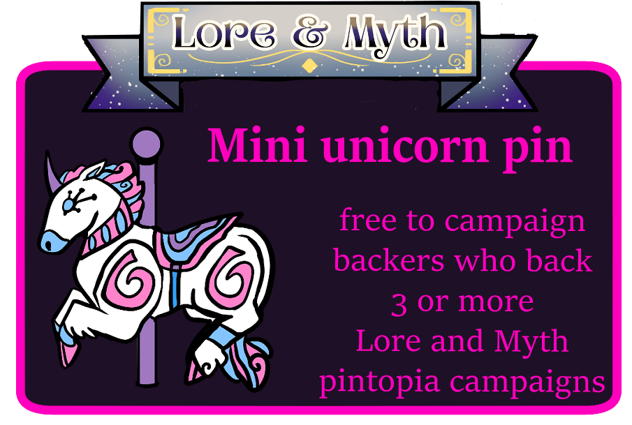 As part of Pintopia, this campaign is part of the Lore and Myth banner! This means if you back any 3 or more Lore and Myth campaigns you'll get a free exclusive mini pin from each Lore and Myth campaign you back.