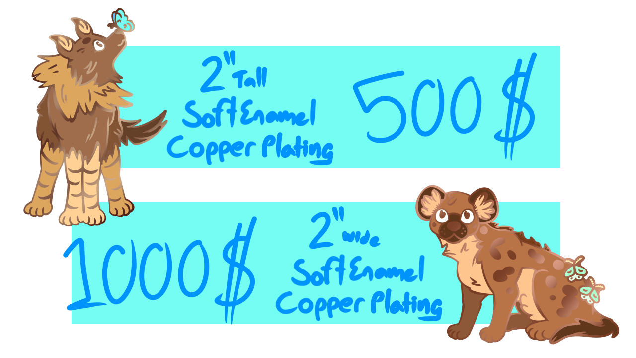 I've chosen to do soft enamel pins for this campaign; I feel like the textured look lends itself to my hyena designs <3
