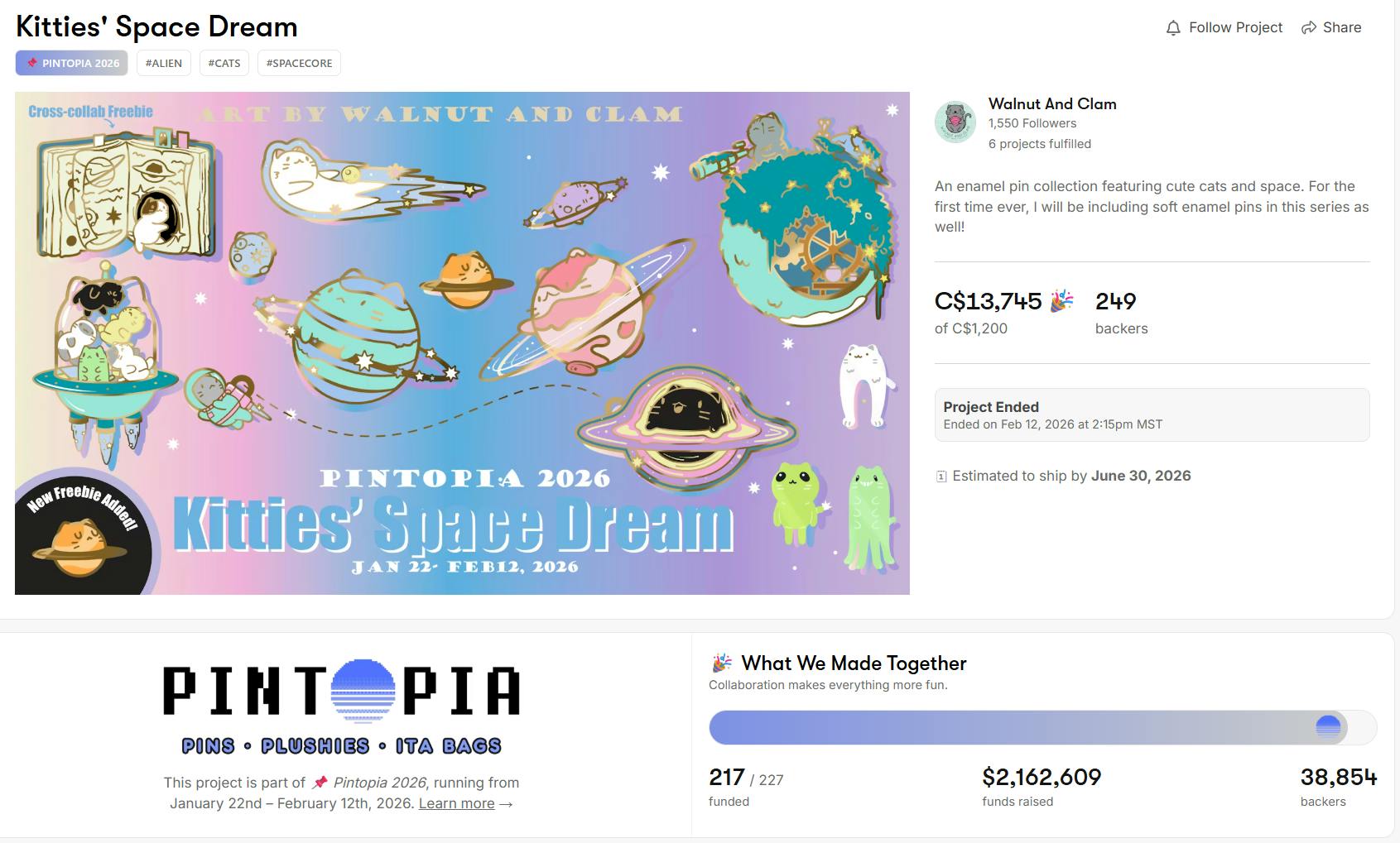 Thank you so much for supporting our Pintopia 2026 project - Kitties' Space Dream! The campaign has ended and we are successfully funded with all the stretched goals unlocked! Thanks again for believing in our project!