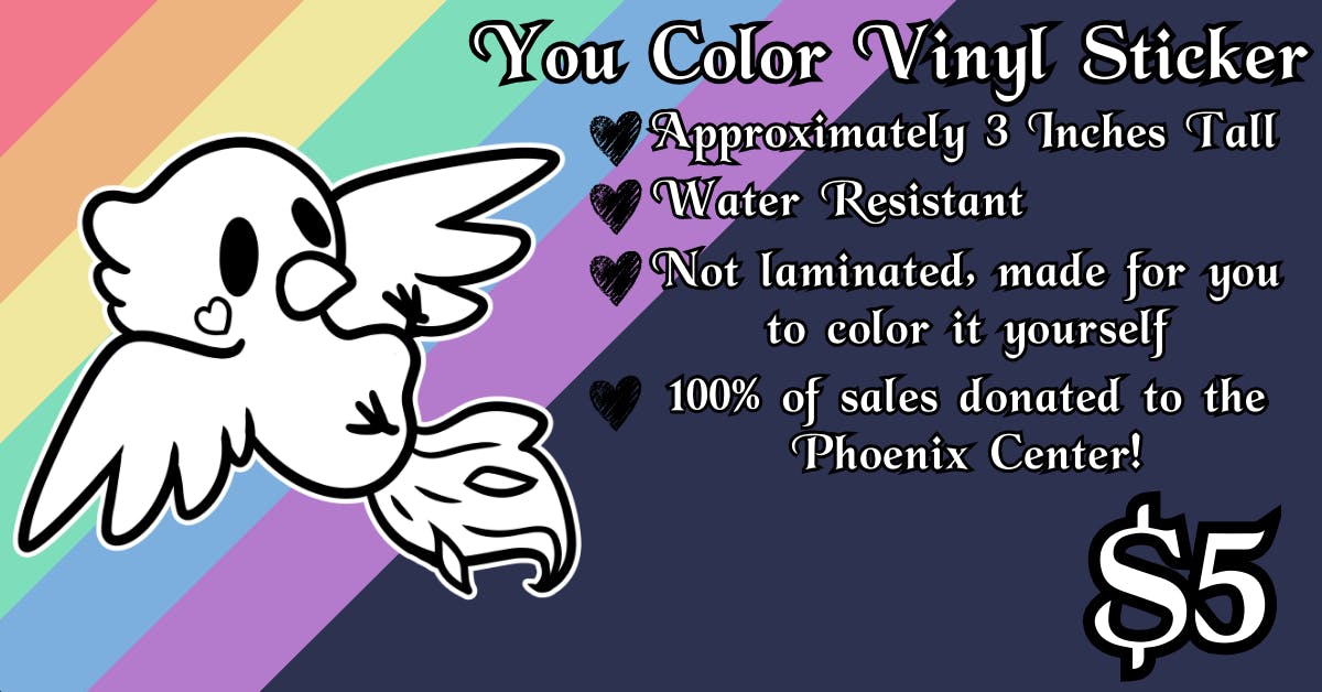 Color Your Own Sticker, Help Change Lives! 100% of sales of the You Color Phoenix will be donated to my local Phoenix center. A wonderful organization that not only hosts the Pride Fest in Springfield every year but also offers services, support, groups, and love year-round! Want to learn more? -> Phoenix Center of Springfield Illinois!