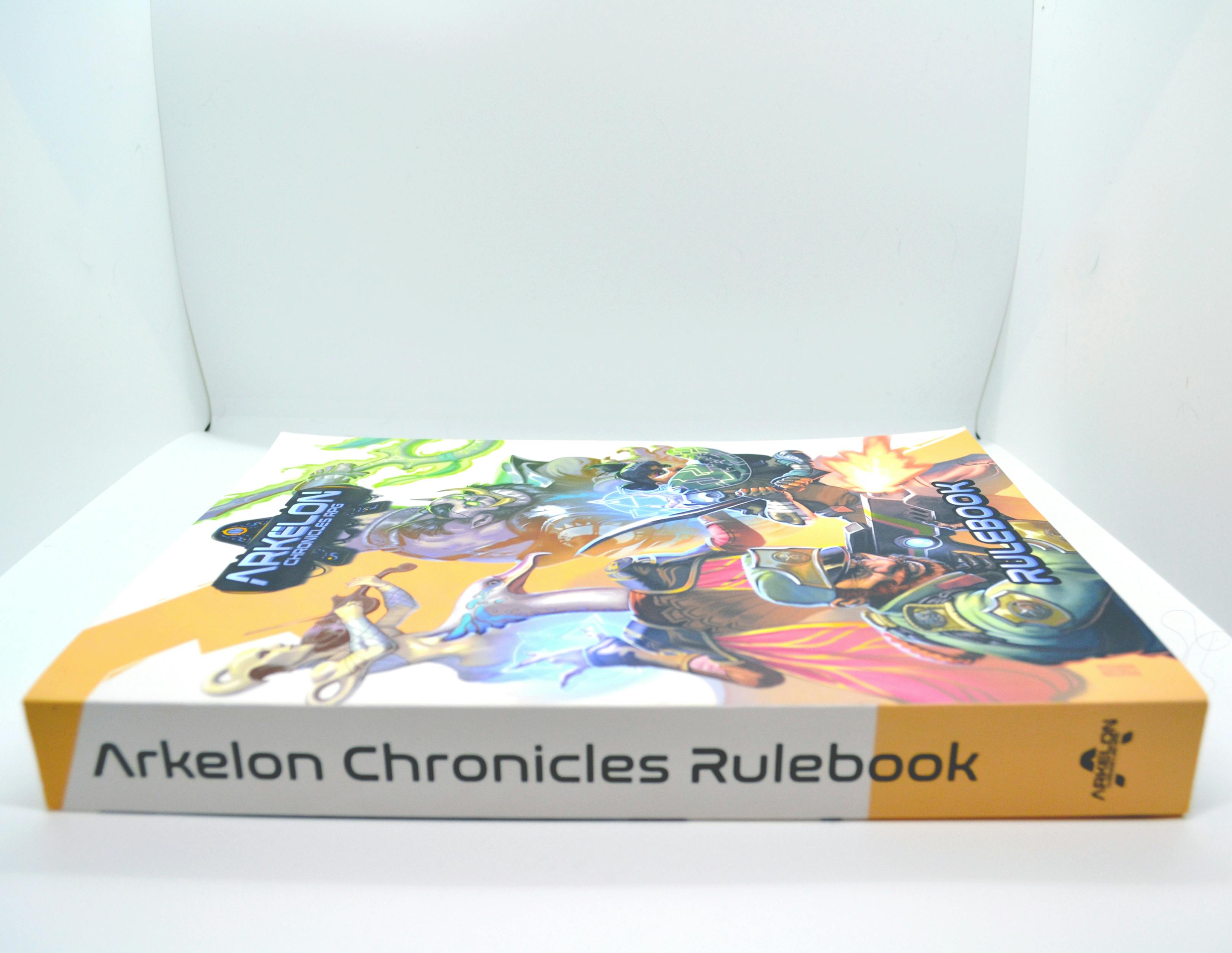 The Arkelon Chronicles softcover is a fully illustrated, 8.5"x11" book containing all the basic rules to play. It also includes everything for Game Masters to learn more about the lore, create their own creatures, and guide players through amazing and compelling stories, without the need to buy multiple products.