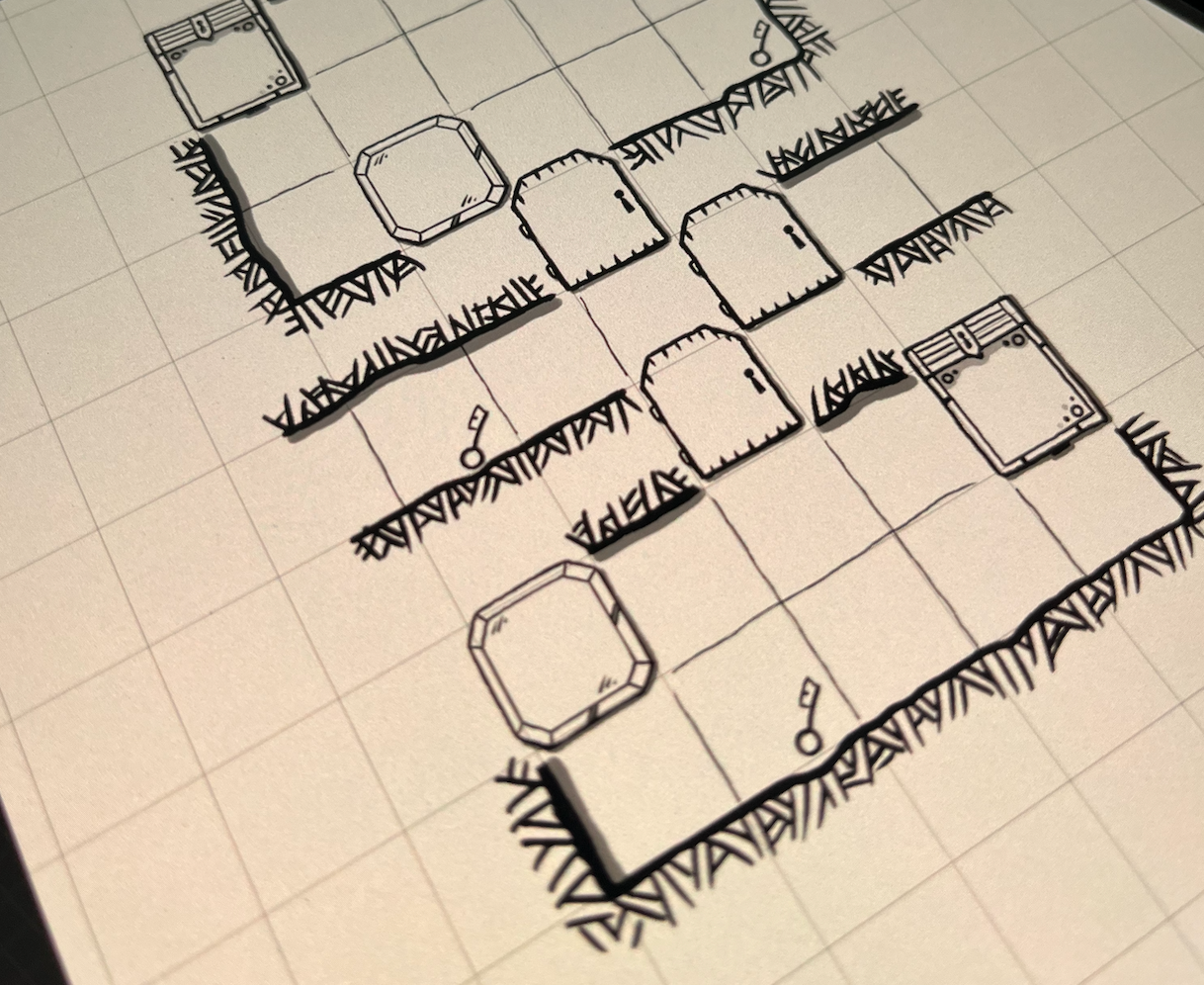 This week I've been drawing new Little Word Dungeons, about 15 new ones sketched out and ready to go.  Here's an example of a sketch (of a really tricky dungeon).