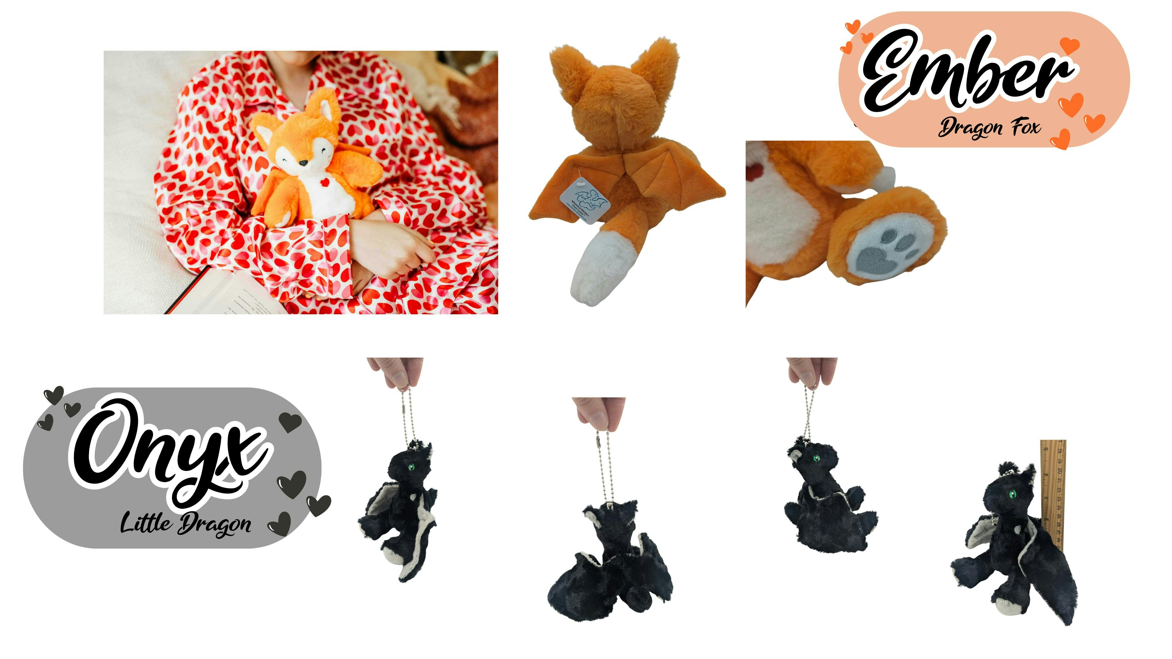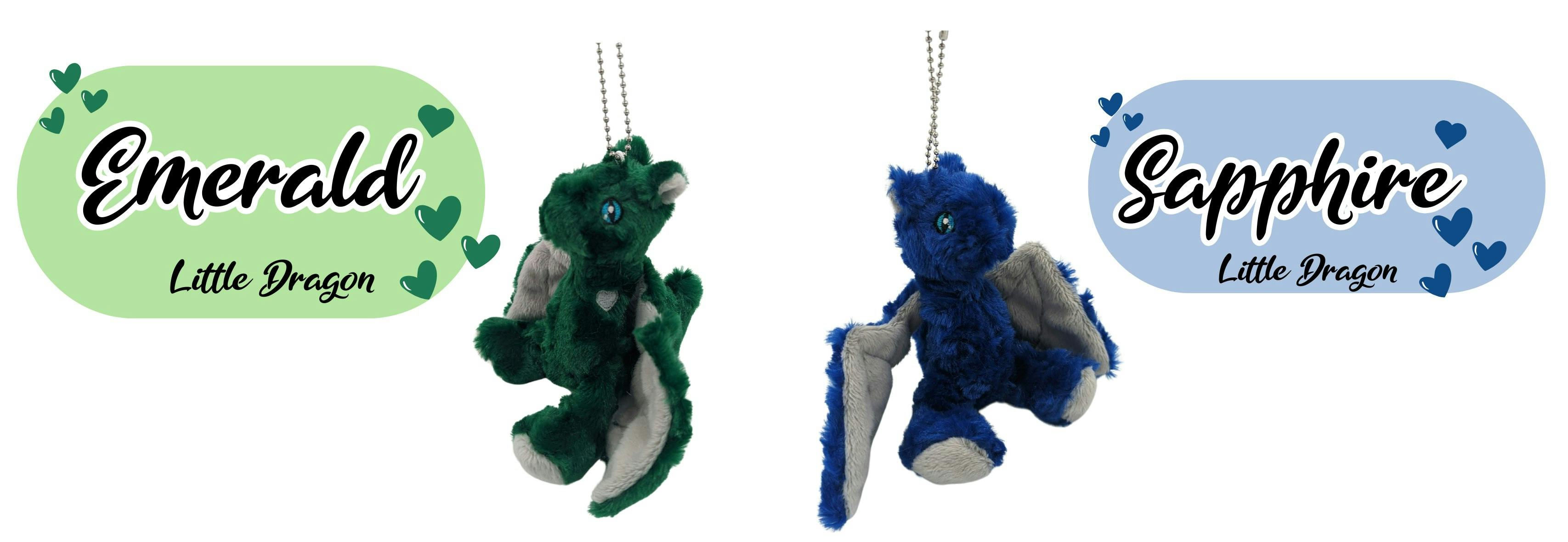 Our Little Dragons are 4'' tall and are also made out of super soft, cuddly fabrics. Little Dragons include a keychain so they can travel anywhere with you.