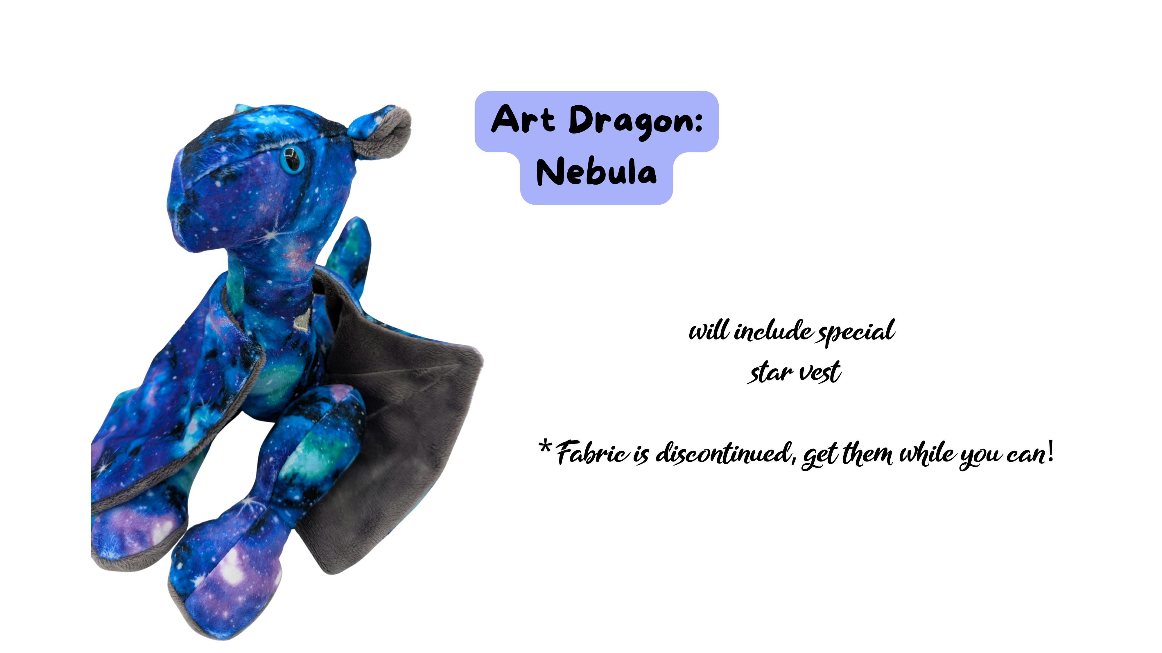 "Nebula" Space Dragon THIS FABRIC IS DISCONTINUED and I cannot get it anymore. Your last chance to get these special dragons. Comes with grey fabric inside the wings, special space fabric as the main pattern. Will include special star vest.