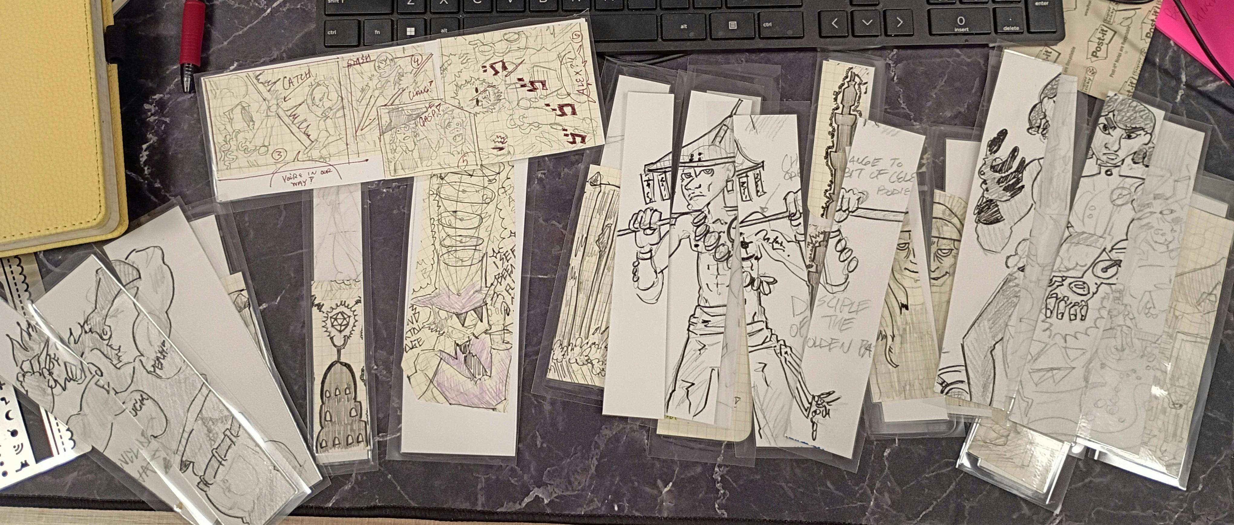The Early Bird Special ends today at 1PM! With just over 20 backers at a physical tier, we're already at a point in which I'm gonna need to make some more bookmarks. I hope y'all enjoy them. There's still some part of me that is terrified of cutting drawings out of my sketchbook, but it's also dope that the OG sketches will live in the books of the project's backers. Some of the next batch will have to come out of my gridded notebooks that I do my game design in like the one pictured below. (Disregard this analog facsimile of a @ziobrando skeet).
