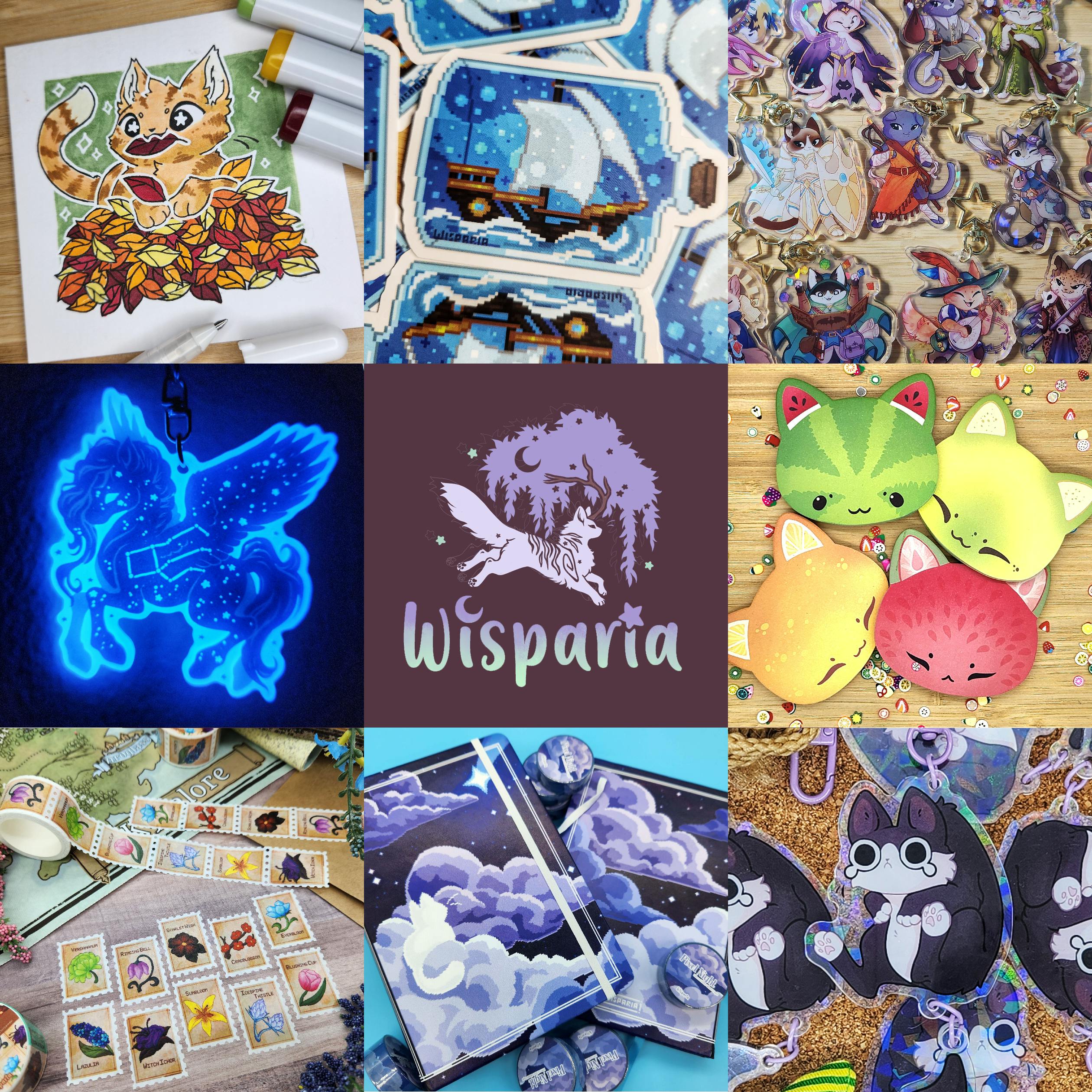 Hello! I'm Wisparia, a small artist based out of Minnesota, USA chasing the dream of creating art to bring a little more magic to the world. I've been creating and selling merch since 2021, from small stickers and washi tape, to custom journals and tote bags.