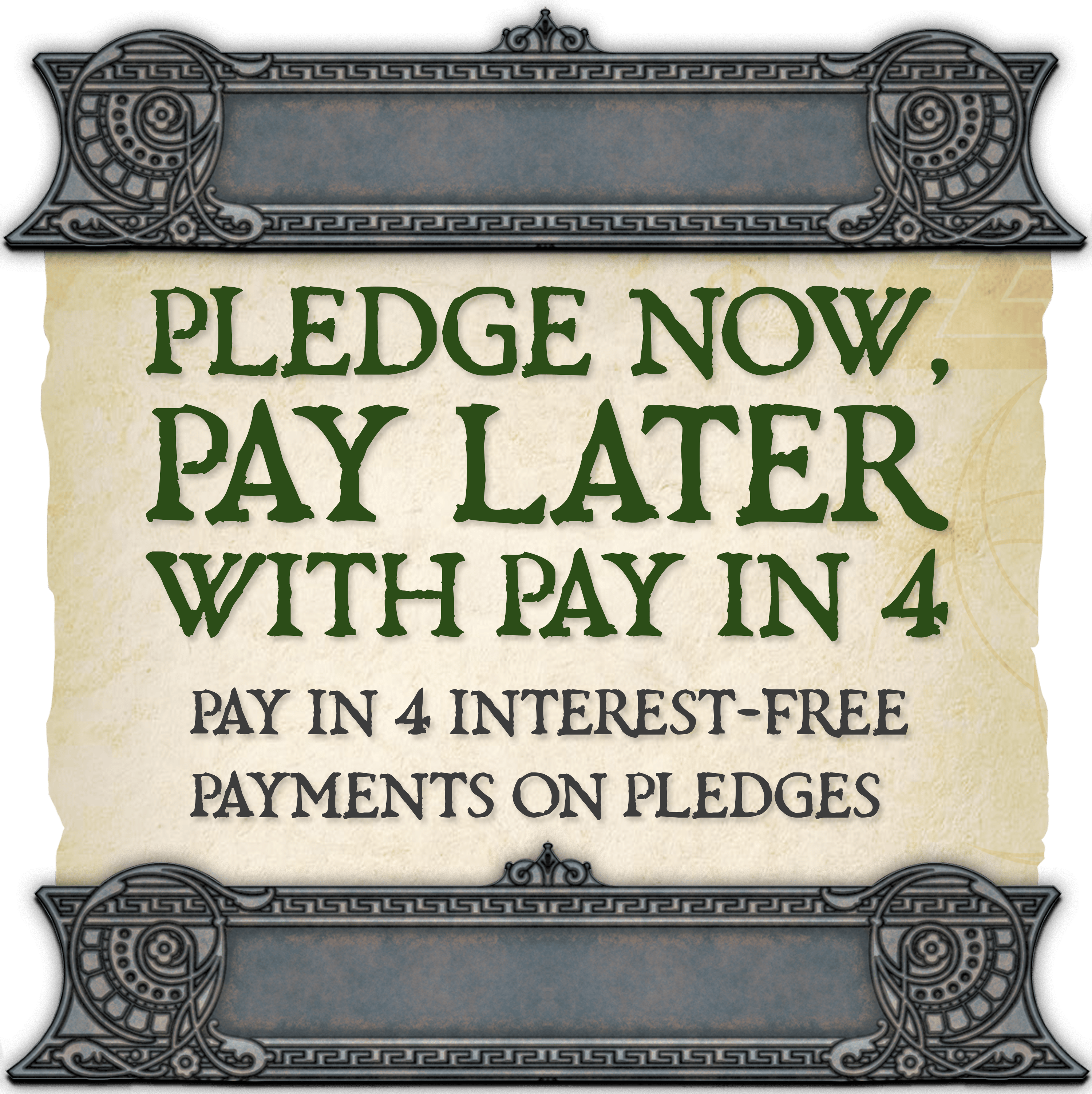 Thanks to Backerkit's Pay Over Time feature, you can split your pledge of $150 or more into four interest-free, automated monthly installments, at no additional charge. These installments will begin as soon as the campaign ends.
