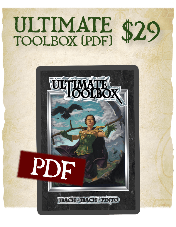 Covering seven distinct and ever-important topics, the Ultimate Toolbox is a must for any GM. Whether your games take place in the city, dungeon, wilds, or even at sea, there's a chapter dedicated to it. Even PCs, NPCs, and magical creations get their fair share of attention, as well as advice and charts for building an adventure or campaign from scratch.