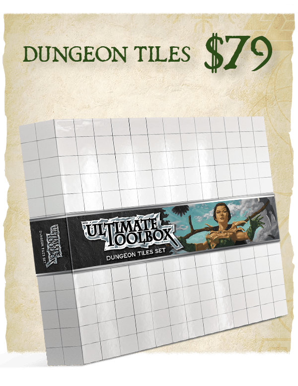Dungeon Tiles: These dungeon tiles are both dry- and wet-erase, thick and sturdy, and can be combined to create massive rooms! Each box contains a total of 2,016 square inches of tile in a variety of sizes to help customize your encounters: four 12"x12" tiles, twenty-four 6"x6" tiles, and sixteen 3"x6" tiles.