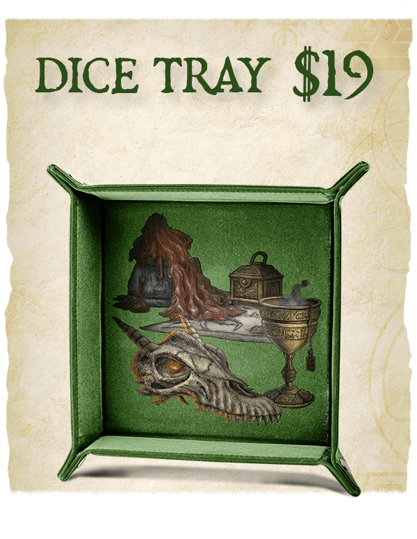Dice Tray: BackerKit Exclusive! No more damaging your table with dice with the Ultimate Toolbox dice tray. This 15x15-inch dice tray is collapsible for easy storage and transport.