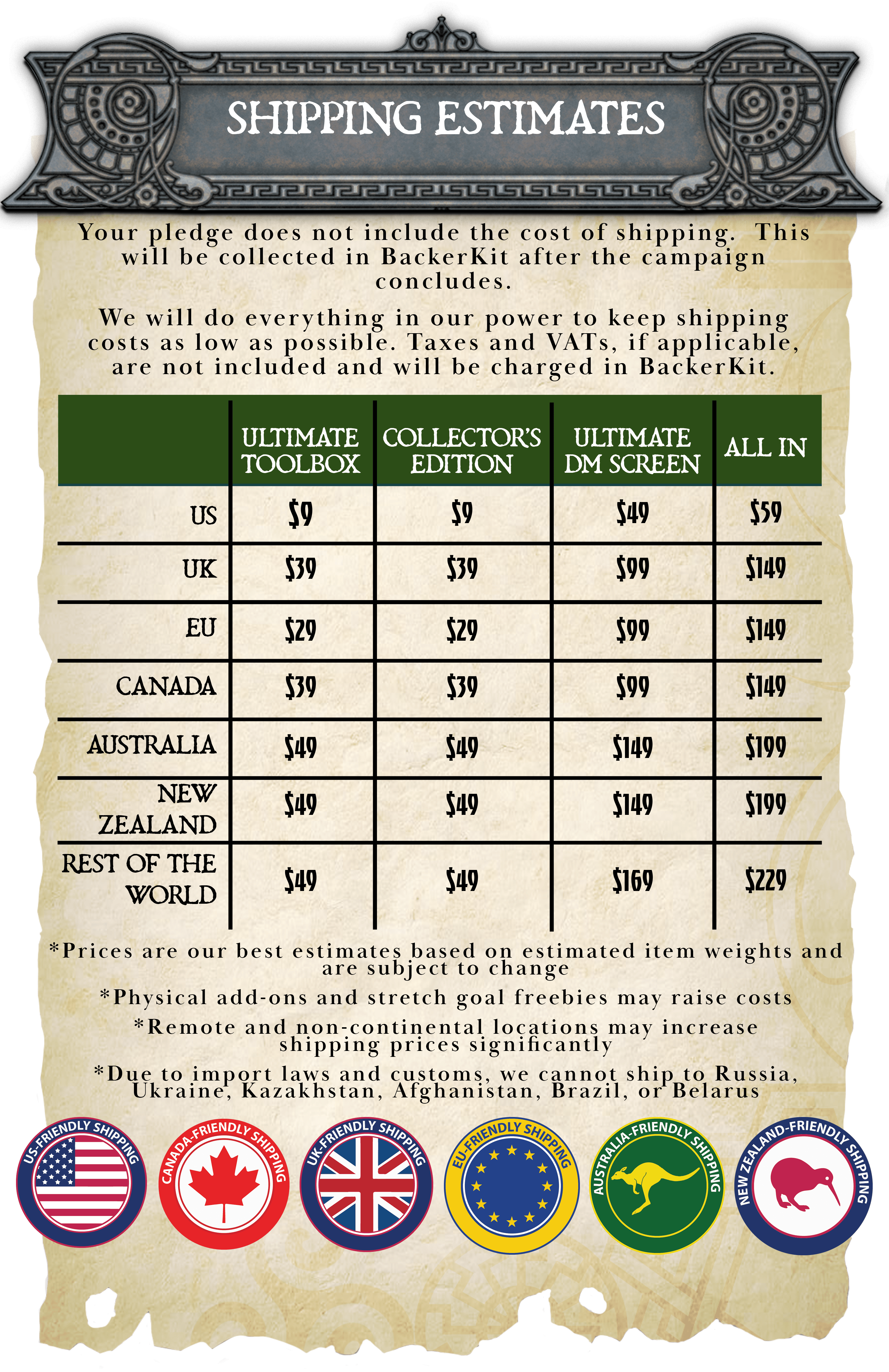 The calculations below are estimates and subject to change. We'll charge shipping once printing is complete and fulfillment is about to begin.