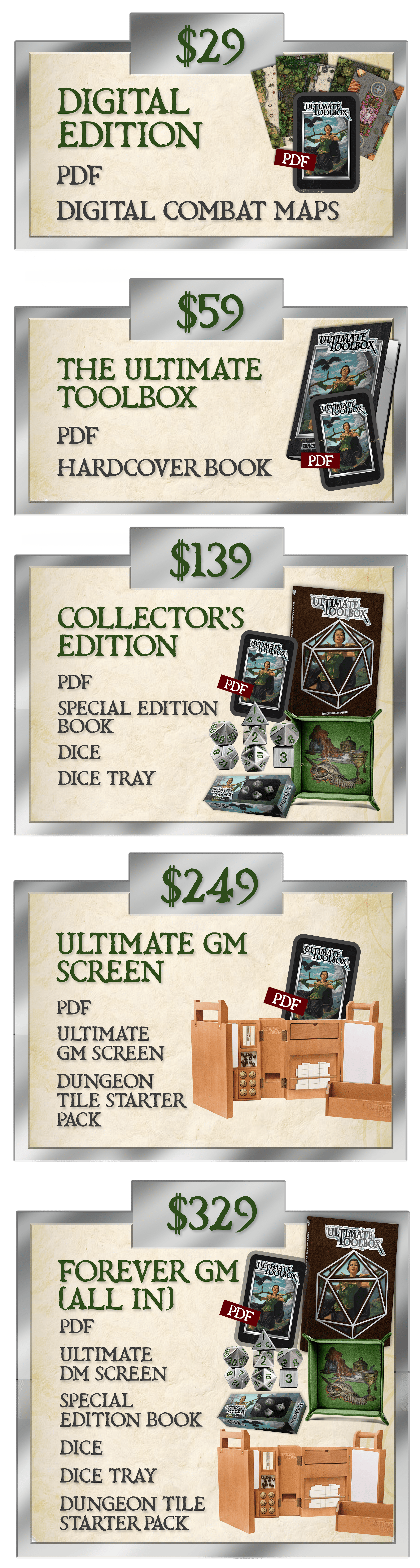 Special edition: Backerkit Exclusive! With a spot gloss UV and d20-shaped die-cut cover, the Ultimate Toolbox Special Edition is a must-have for your gaming collection.