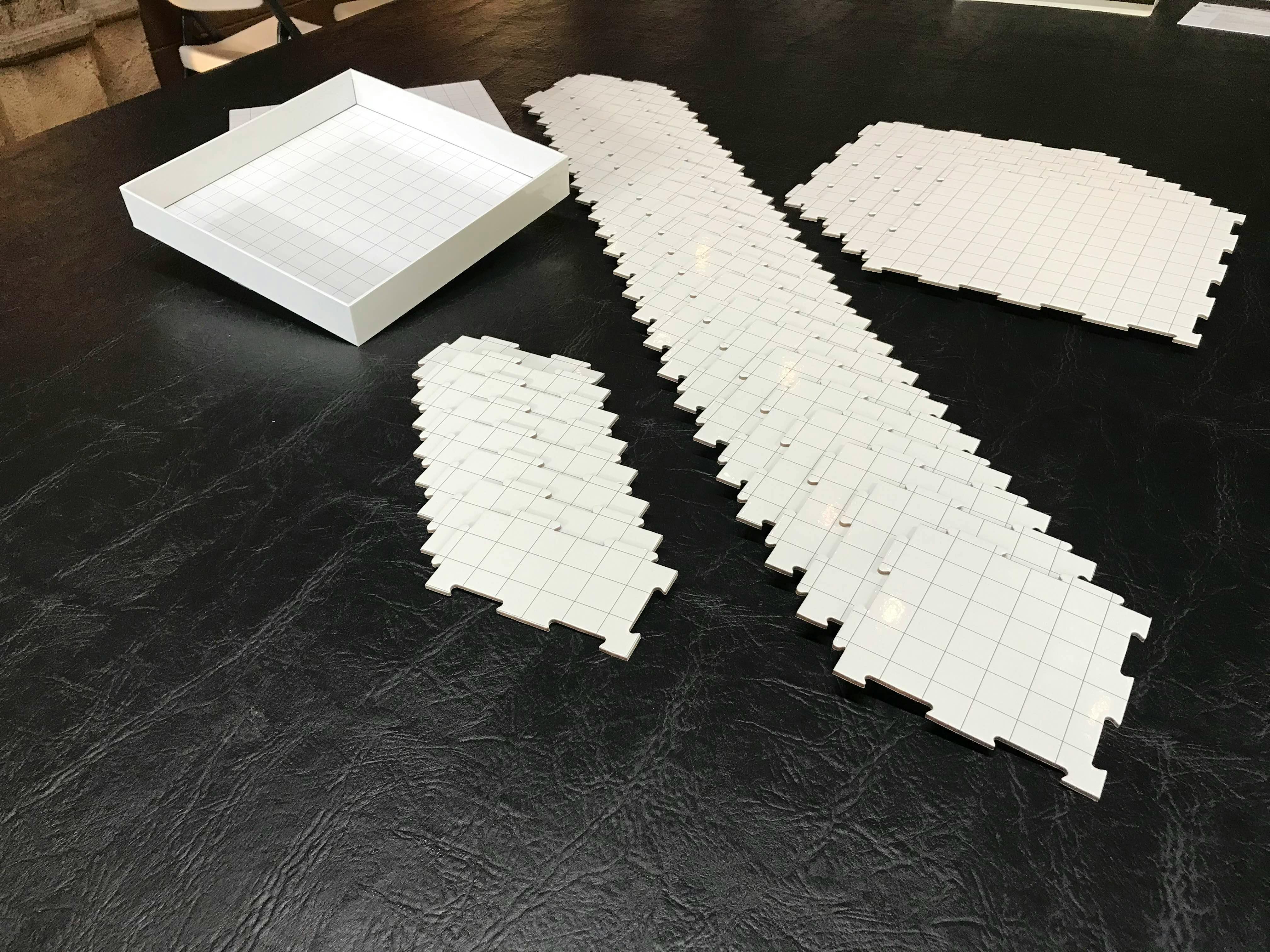In addition to those pieces, the box top and bottom will feature printed squares on both the inside and outside.