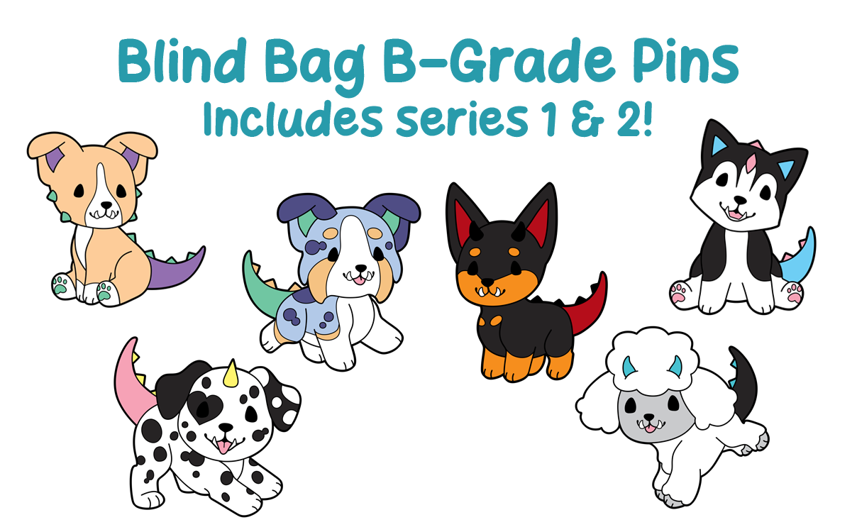 Blind Bag B-Grade Pins: A random B-Grade pin for a discount! Includes series 1 and 2! B-Grade pins have 1-2 small barely-noticeable imperfections. Will avoid giving duplicates to your A-Grade pins when I'm able.