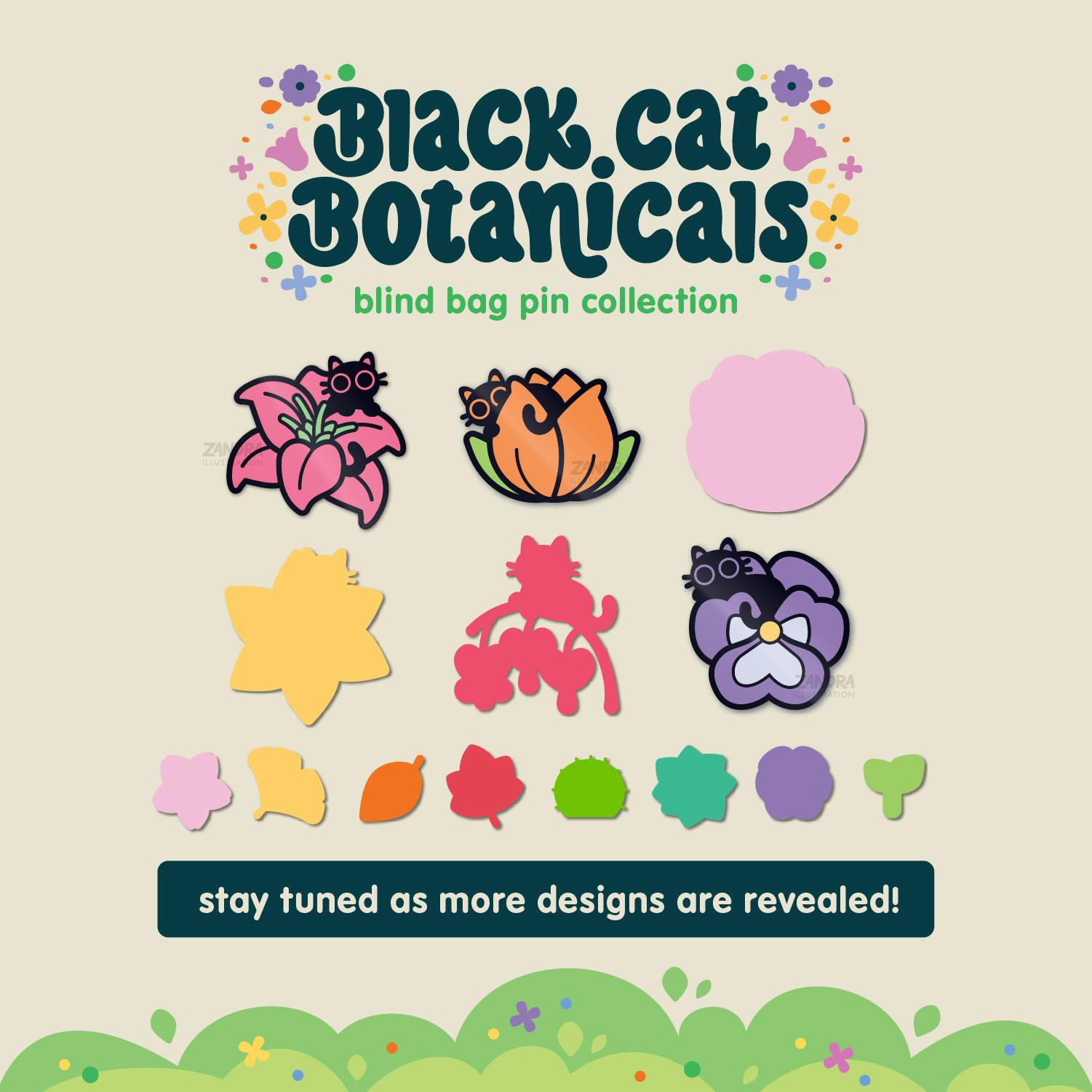 Black Cat Botanicals will be Series 4 of my mystery cat & plant dyed pin collection, with several new designs of pins as well as stickers and stationery in the works. ๐ป