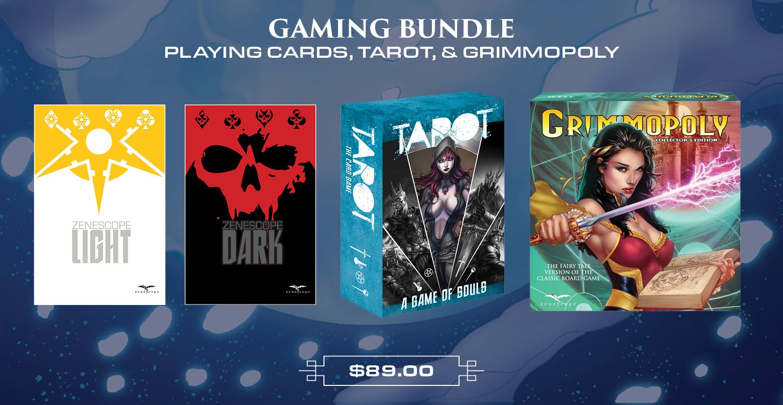 Level up your collection with Zenescope’s Gaming Bundle! Packed with exclusive board games, premium playing cards, and the soul-snatching Tarot: A Game of Souls, this bundle delivers gameplay for fans who love strategy, storytelling and all things comics!